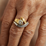 Prsten ve vintage stylu, nepravidelného tvaru, zlatý a stříbrný se zirkonií