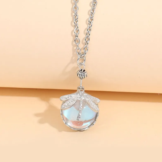 Retro náhrdelník se zelenou vážkou a krystalem
