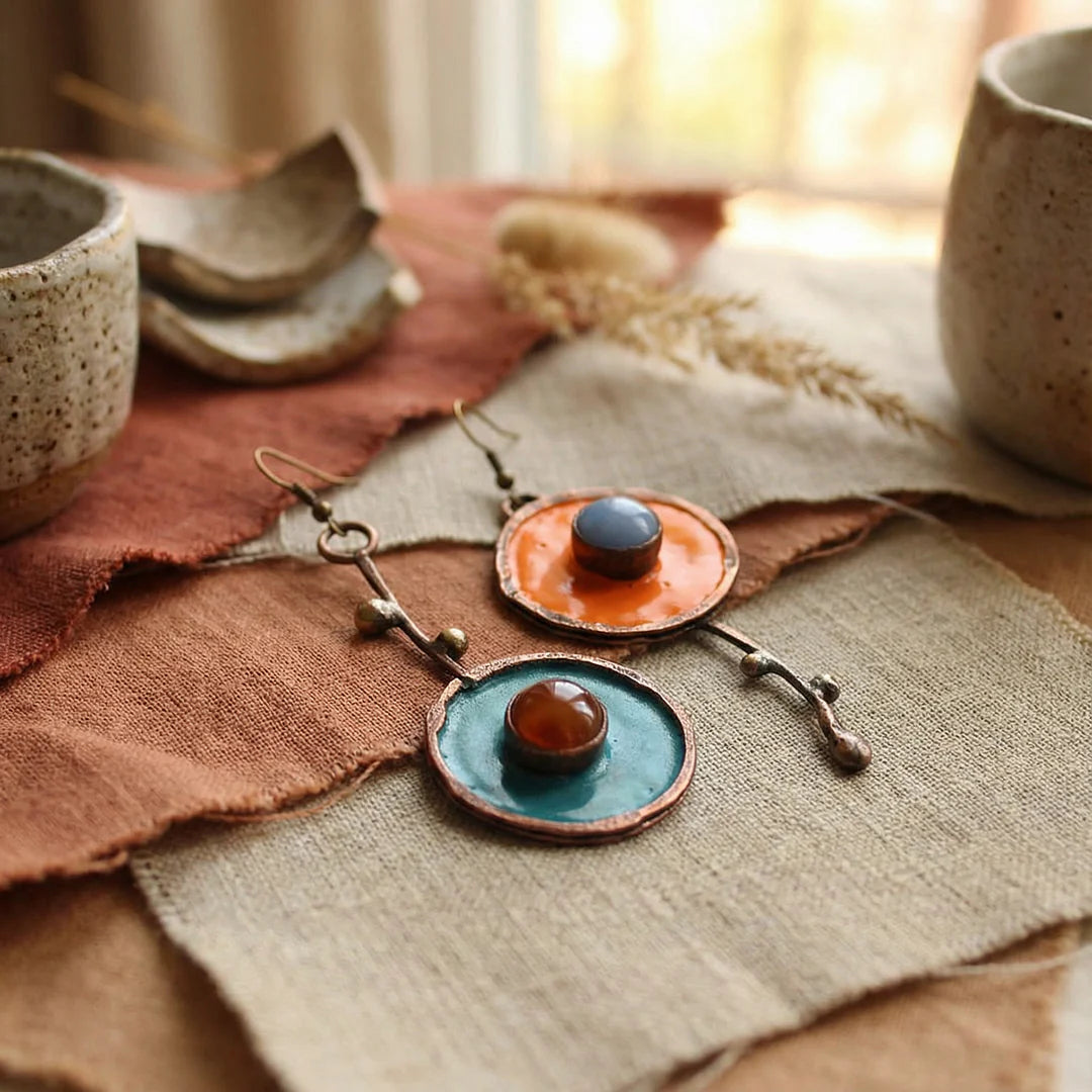 Náušnice Grafitem Bronzovem Starem Asymetrické Vintage