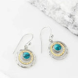 Boho náušnice Saturno s tyrkysovým kamenem ze stříbra a zlata