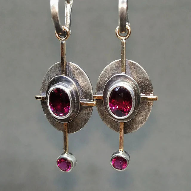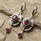 Boho náušnice s granátovým krystalem z ryzího stříbra