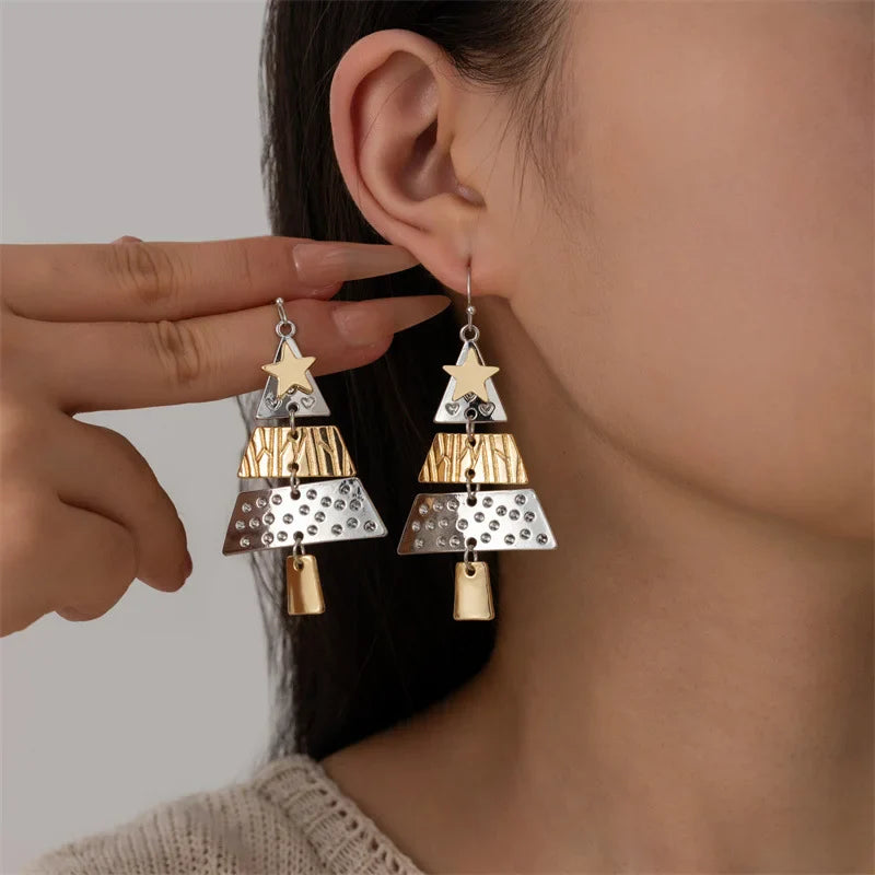 Visací náušnice ve tvaru vánočního stromu z různých kovů